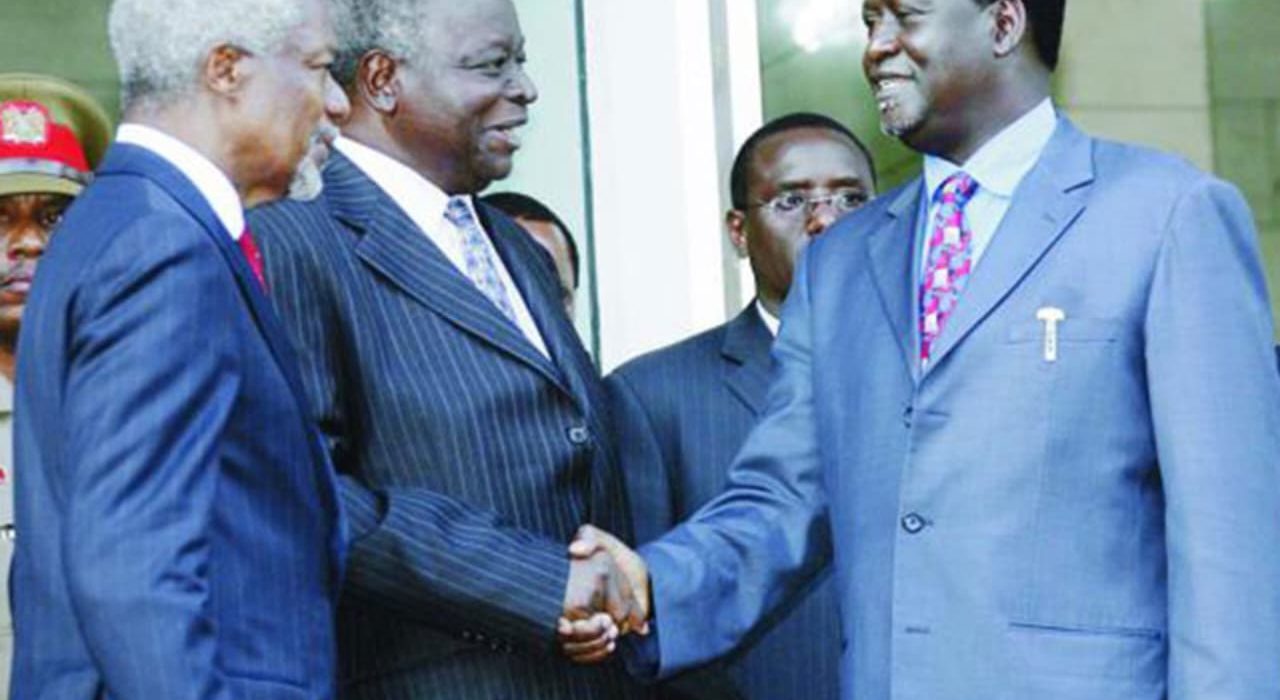 Then, under international mediation led by Kofi Annan, the rivals met. Cameras captured the moment Kibaki and Raila shaking hands across a conference table, their faces stiff, their eyes tired.